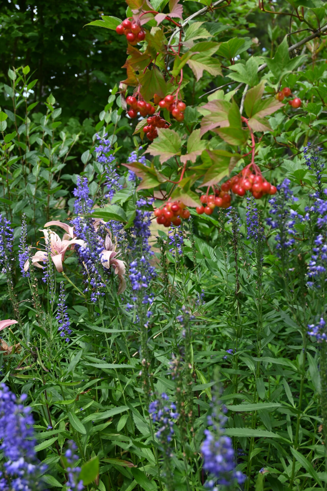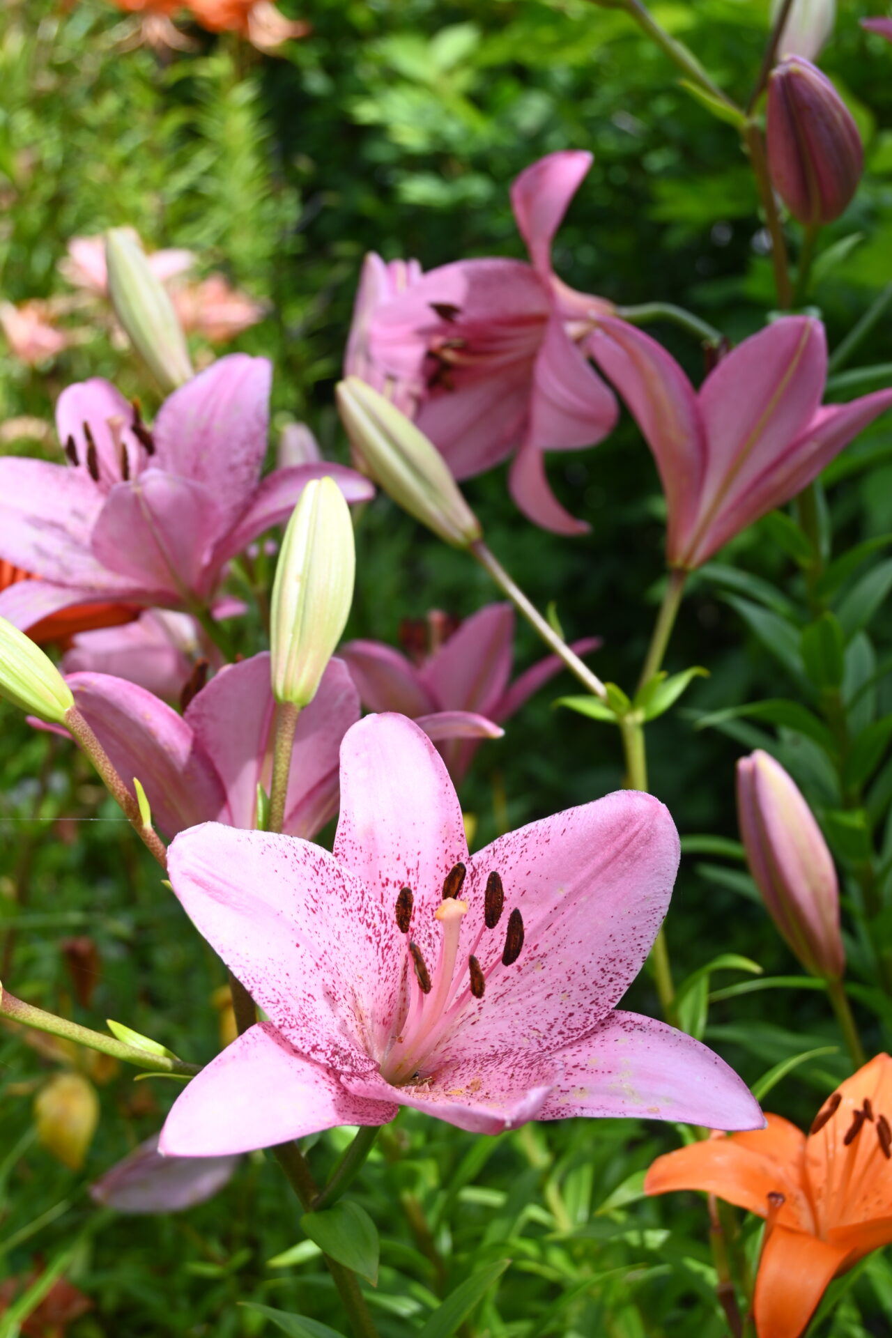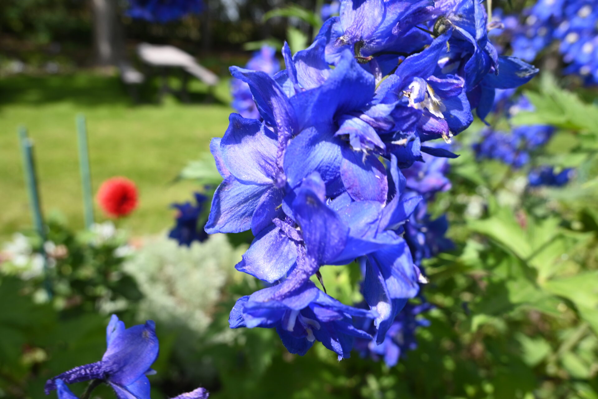 The perennial garden alone could stop you in your tracks. In summer, borders burst into jewel tones: magenta coneflowers, fiery orange daylilies, the sunny cheer of black-eyed Susans. Lavender sways alongside Shasta daisies, while hollyhocks stand tall like guardians in shades from blush to crimson. Turn a corner and blues of delphinium take over, rich purples of salvia crowd close, begonias flash their bold fire-reds. It doesn’t stay still; it shifts, it moves, it pulls you forward.