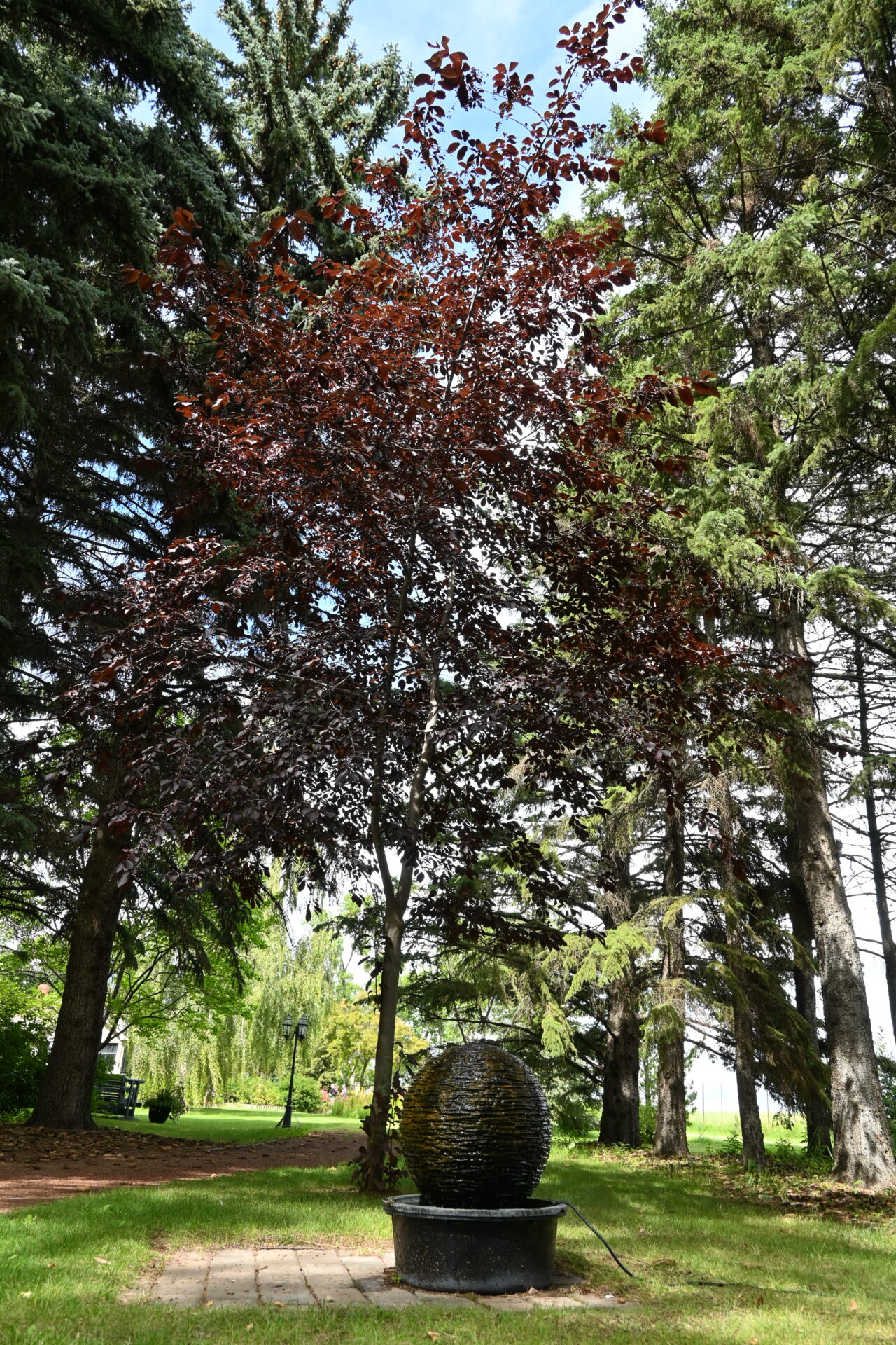 Some trees here have seen more than a century, like the wych elm carried over from England more than 100 years ago. The bog garden, once a bare patch, now cradles a secluded pond lined with perennials and a stone path leading to two chairs. A stump sits nearby—practically begging for a game of tic-tac-toe with painted stones.